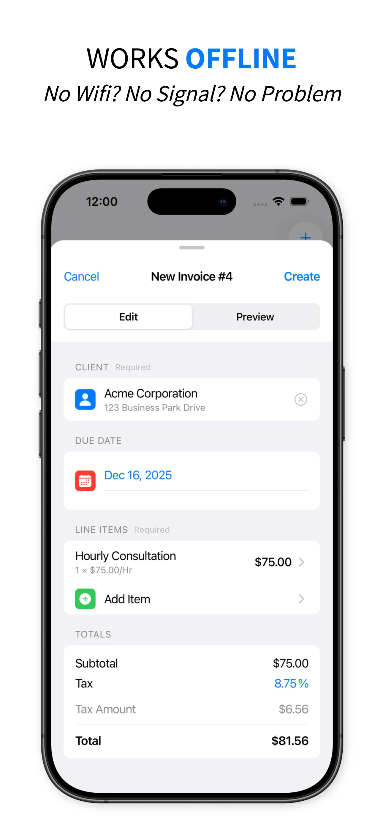 A simple app for creating professional invoice PDFs. We are not a payment processor. You create the document, then collect payment however you prefer (cash, check, Zelle, Venmo, etc.).